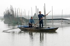 昨天清晨,记者早早来到江苏省扬州市方巷镇沿湖村,村子临近邵伯湖,上了村东大堤,就能看到碧波浩淼的邵伯湖。记者跟随邵伯湖渔政监督支队检查员李爱章,乘坐小快艇到了邵伯湖上,探访大闸蟹养殖户捕蟹情况。