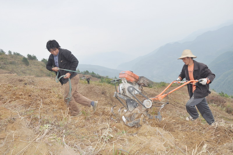 “再过两天,这片茶园就能全部开挖整治出来了。”在兴鹿村茶园,正在用微耕机耕地的周老汉停下手中的活儿,边揩额头的汗水边告诉笔者,这片新平整的土地将近600亩,将栽植新引进的优质绿茶“龙顶大白”。