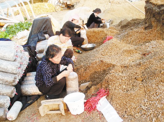 10月22日,商水县舒庄乡的菌农正在装菌种。据悉,该乡今年共有600多户群众培育食用菌。眼下,菌农正抓紧时间装菌种,确保食用菌早进棚、早收获、早创收.