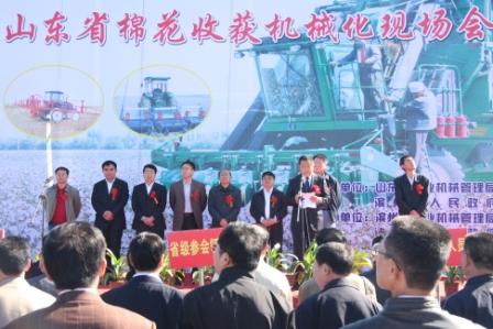 林建华局长指出,棉花是山东省重要的经济作物之一,也是种植面积较大、规模化和区域化程度较高的经济作物,常年种植面积在1300万亩左右,约占全省经济作物种植面积的近30%,在全国居第二位。目前棉花的播种、植保等环节已基本实现了机械化,棉秆收获也取得了突破性进展,但作为关键生产环节的棉花收获机械化仍是空白,完全靠人工采摘,收获效率低,劳动强度大,生产成本高,严重影响了棉农发展棉花生产的积极性,制约了棉花产业的进一步发展,阻碍了全省农机化的全面发展、科学发展。今年省政府出台的《关于促进农业机械化和农机工业又好又快发展的意见》,要求到2015年全省对棉花等8大经济作物关键生产环节机械化实现重大突破。省农机局专门出台了《关于推进全省经济作物机械化发展的意见》。全省棉产区均把发展棉花生产机械化提上了重要日程,建立棉花收获的机械化创新示范基地,着力探索棉花生产全过程机械化的路子和途径,为推进棉花生产特别是棉花收获机械化的发展积极努力。