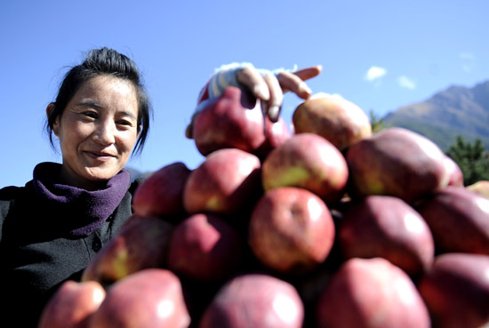 西藏林芝地区因湿润的气候和保存完好的原始森林而被称作西藏的江南。这里盛产苹果、梨子、草莓等各种水果,不仅丰富了当地群众的果篮子,同时也增加当地果农的收入。 新华社记者普布扎西摄