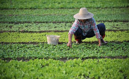 10月29日,一名农民在海口市郊的菜地里为小白菜育苗。为确保冬季瓜菜市场供应,海南省农业部门将建设50个集中育苗点,集中育苗6亿株。新华社记者 郭程 摄