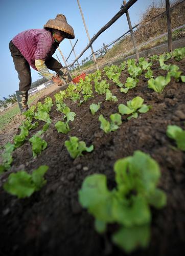 10月29日,一名农民在海口市郊的菜地里为生菜育苗。