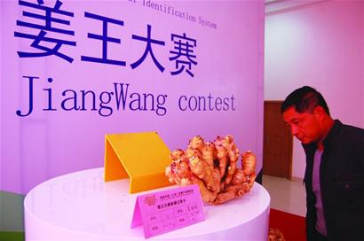 俺种的姜足足有7斤多,个头足够大了吧? 你这姜不行,比起俺种的还差点儿,俺这姜8斤还高高的 在28日平度举行的生姜博览会 姜王 大赛展厅里,云集了30多名来自省内各地的种姜高手,他们在这里摆下 擂台 ,共同评选今年的 姜王 ,最终来自潍坊昌邑的姜农葛福智凭借一株重达9斤3两的生姜夺得 姜王 称号。