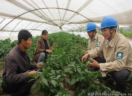 在开展“为民服务创先争优”活动中,江苏高邮市供电公司积极服务“三农”,助力地方产业结构调整,定期不定期组织农电工深入田间地头,为当地温室瓜果蔬菜大棚提供供电服务。图为10月28日,该公司员工在卸甲镇一平村高效农业园了解菜农用电需求。