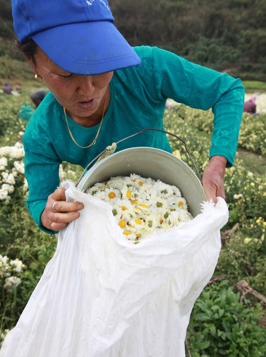 目前,浙江杭白菊已进入采摘期,各地菊农抓紧时间采收。新华社发(金卫其 摄)