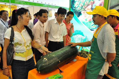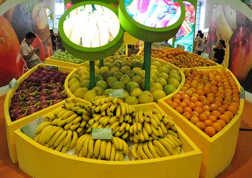 11月4日,为期3天的2011年中国国际果蔬、加工技术及物流展览会在广西南宁国际会展中心开幕,来自10余个国家和地区的160多家果蔬企业携特色果蔬产品前来参展,让南宁市民大饱眼福和口福。新华社发(陆波岸 摄)