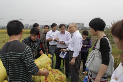 省人大副主任程渭山,永康市代市长徐华水一行兴致勃勃地看完了整个验收过程。程渭山副主任说,水稻高产取决于3个因素,即品种、自然条件和栽培技术,永康的单季稻高产正是因为这三者完美结合的结果,值得向全省推广。