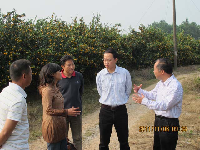 在广西水果生产技术指导总站梁声记书记的陪同下,农业部水果项目官员杜建斌深入生产第一线,分别到隆安县的金穗公司、柳城县的马山乡、灵川县的潭下镇调研香蕉和柑橘的产销情况。每到一处,杜建斌都与当地种植户了解香蕉、柑橘的生产情况,详细了解香蕉和柑橘的生产投入、生产成本以及劳动力情况。在水果收购点,杜建斌向前来收购的客商了解香蕉、柑橘的购销情况。当了解到香蕉收购价在4―4.5元/公斤左右,创广西香蕉收购价历年同期最高,柑橘收购价在3.2―3.6元/公斤时,杜建斌十分高兴并指出,今年全国水果是一个全面丰收年,大家要早着手、早准备作好各种冬熟水果的销售工作,积极扩大流通渠道,同时要发挥标准果园的示范推动作用,抓好水果后期品质的提升和质量安全,千方百计实现农民增收。