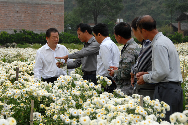 县长林武民得知这一情况后,立即作出重要批示,要求帮助农民解决药菊销售难问题。11月7日,副县长陈义军带着药菊收购商李老板等到观音乡狮塘村和平安乡陶马坪村实地调查,进行现场洽谈,对接产销,与农民共同商讨应对之策,缓解药菊销售难的问题。