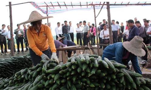 与会人员在融水镇新国村古选屯蔬菜示范基地参观