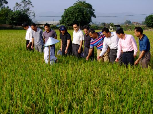 2011年11月7日,在自治区农作物品种审定委员会办公室成员、自治区种子管理总站品种科庞华莒科长和区农作物品种审定委员会专业委员会副主任、区农技推广总站陈德威总农艺师的带领下,9名水稻品审委员、专家到玉林市考察。考察组认真考察了仁东区试点的生产验和市农科所区试的各个品种,还专门考察了玉林市农科所新育成的特优269晚稻表现情况。