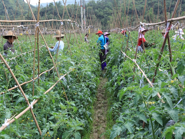 近日,西林县普合乡道路两边的田间地头一派繁忙的景象,普合乡的农民正在小蕃茄基地给小蕃茄搭架子。
