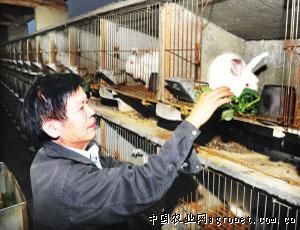 今年是嵊州市的“白中王”长毛兔被认定为国家级新品种的第一年,每年入冬时节是“白中王”长毛兔繁育小种兔的最佳时机。目前该市3万多兔农抓住时机,精心培育种兔。图为昨日该市黄泽镇一种兔养殖场里,兔农正在精心饲养受孕种兔。
