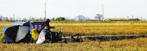 浙江恒海农业开发有限公司副总经理劳国其翻着记事本,告诉记者:“已经收割了1000多亩,得趁这两天天气好,抓紧收割。”令人感叹的是,收割这么大片面积的水稻,只用了25个人。“这得益于当初围涂的时候,是按高标准农田的建设要求来做的。”劳国其说。