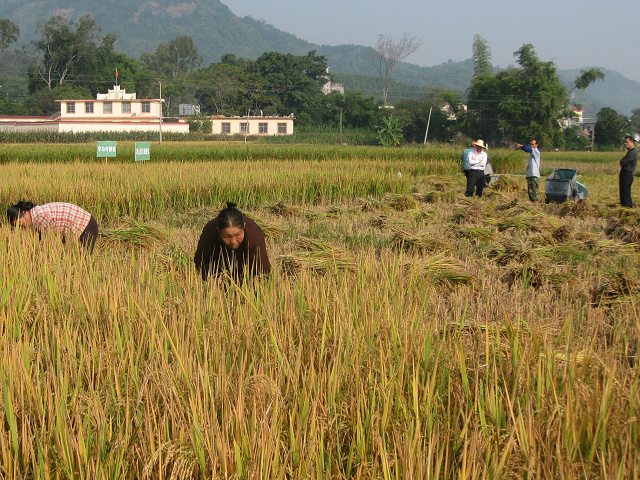 11月中旬,凭祥市晚稻陆续进入收割期。近期凭祥天气晴好,温度适宜,正是收割的好时机,群众纷纷开镰收割。图为友谊镇礼茶村村民在收割晚稻。