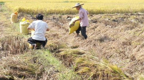 11月14日,玉州区城西街道泉西塘村的水稻开始收割,虽是深秋,中午的太阳依然猛烈,农民们三三两两地在田头的树荫下拉家常,田里的机器声一停止,他们就下田把收割好的稻谷搬回家,这一季的收获就算完成了。