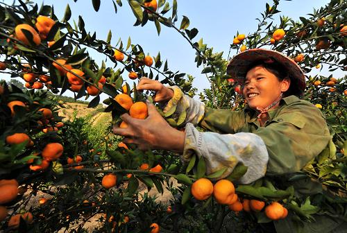 时下,广西柳城县蜜桔成熟,来自北京、重庆、广东、江西等地的收购商云集于此,在田间地头收购蜜桔,部分蜜桔还出口到东盟国家。柳城县通过产业结构调整,蜜桔种植面积达15万亩,产量超过20万吨。蜜桔产业带动了旅游、加工、包装、运输、农资等相关产业的发展,仅采摘、分装水果,就将给当地农民带来约5000万元的收入。新华社记者 李斌 摄