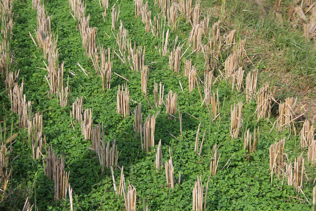 下图为龙胜镇拐江组的农民在水稻收割前12天(即9月5日)播种的绿肥种,目前绿肥长势良好。