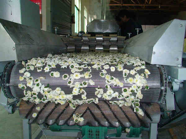 与传统技术相比,该一体机利用特制炉子产生的高温蒸汽使菊花内的活性酶快速彻底钝化保持原色、且利用低温大风量脱除花瓣花蕊表面附着水分和内含自由基水分。这样花的形状基本定型后,通过后续的复烘及足干不会容易变形,从而彻底消除雨水天气采摘烘干外形差异和相对的营养成份流失,且能满足机械化连续化的规模加工需求,促进菊花生产加工向规模化、产业化方向发展。