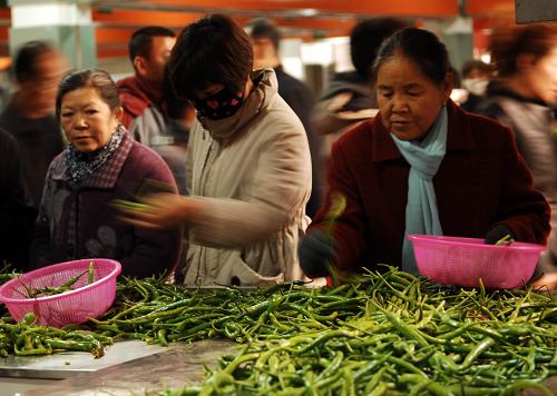 11月17日,市民在新开的莫家街市场选购蔬菜。