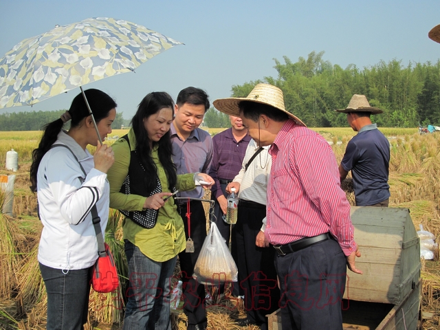 11月15日,笔者在桂平市南木镇中桥村看到,一片片金灿灿的稻田随风而动,处处洋溢着一派丰收的喜悦。由贵港市、桂平市科技、农业、统计等部门的专家人员,正在对该村水稻高产试验区进行测产验收。专家组随机选取了20个小区进行取样试收。经验收,测出试验区最高亩产为505.44公斤,平均亩产为478.56公斤。比早稻平均亩产高出28.65公斤。
