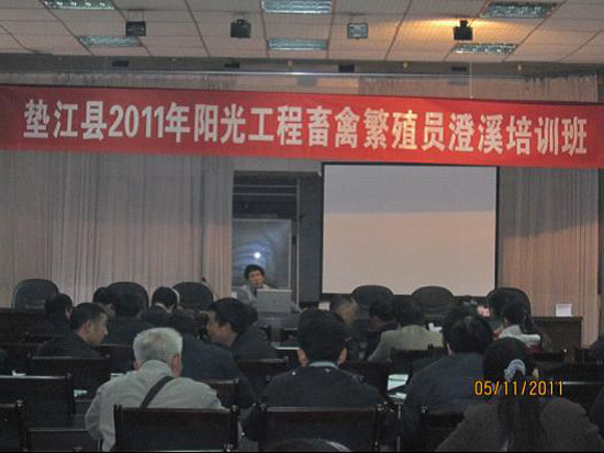 为了全面贯彻落实重庆市“阳光工程”相关文件精神,引导农民转变就业观念,提高养殖农户养殖技能和生产管理水平,促进畜牧业增效和农民增收。近期,垫江县畜牧生产站经过精心准备和周密安排,组织相关人员先后在澄溪、鹤游、坪山等乡镇举办垫江县2011年“阳光工程”畜禽繁殖员培训班”。
