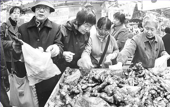 唐人医药连锁有限责任公司将日前购进的1500公斤生姜,用专车配送到40多家连锁药店。“消费满20元,就可以得到药店的一袋免费生姜。”药店店员说,这样可以吸引更多市民关注姜农处境。据了解,公司随后又购进1250公斤生姜,发动员工个人认购,献给姜农一份爱心。