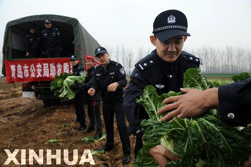11月22日,公安民警在即墨市移风镇院上村地头收购大白菜,仅青岛市公安局一家单位一次就采购了8万公斤。