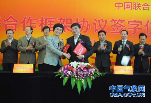 中国气象局副局长矫梅燕,中国联通总经理陆益民出席签字仪式 何孟洁摄影报道