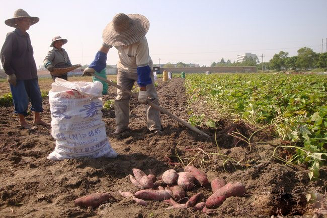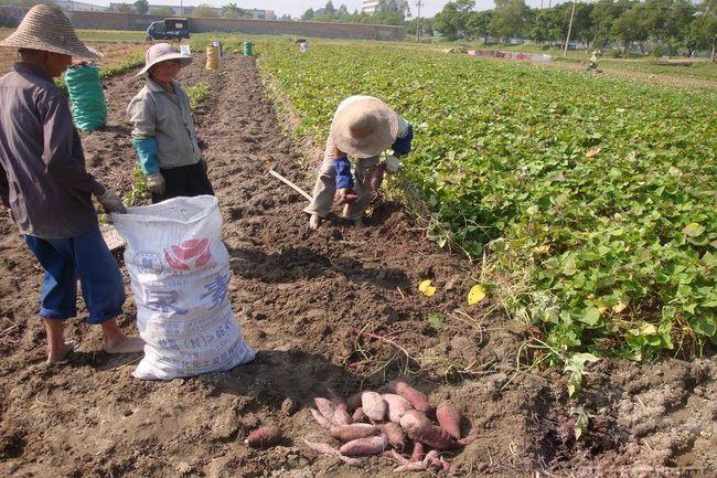 近日,玉州区仁厚镇农民正在收挖成熟的秋红薯。今年玉州区仁厚镇秋红薯种植达10000亩。由于品质好,目前仁厚紫心薯每公斤批发价达到3.5元左右。
