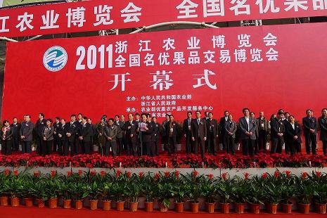 日前,为期5天、以“品质、交易、交流”为主题的2011年全国名优果品交易博览会在杭州和平国际会展中心开幕。该博览会由农业部、浙江省人民政府共同主办,农业部优质农产品开发服务中心、浙江省农业厅承办,全国共有17个省的近百家企业参展。