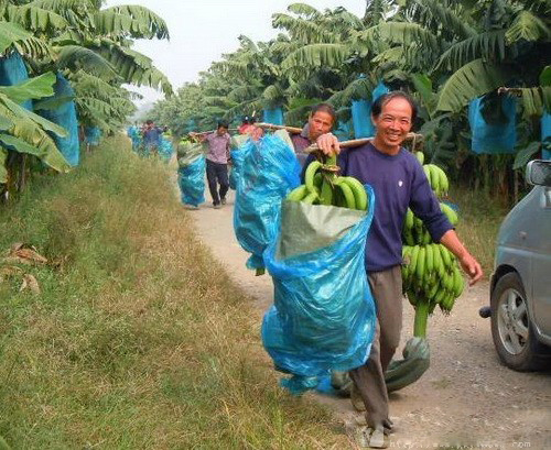 福绵管理区樟木镇大力推广应用避雨、避寒、避晒的 "三避"技术,通过大面积采用香蕉果穗薄膜袋套袋技术,提高产量,改善品质,增加效益,增强香蕉的市场竞争力。今年该镇种植优质香蕉4500亩,长势喜人,获得好收成,深受外地客商青睐。目前,香蕉销售价格每市斤1.9-2元,远销省外。