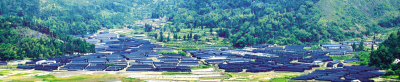 沿着大荆溪,穿入莽苍的大山深处,灿烂阳光下的镇安乡间道上人车稀少。悠悠青山下,东亚石斛开发有限公司的下?村种植基地里连片的黑色大棚特别醒目。