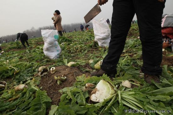 一群一群的人拿着菜刀对准大萝卜砍下去,看不上眼的随即丢弃,好的装进蛇皮袋运回家。
