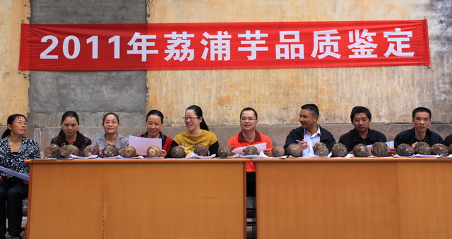 11月29日,荔浦县举行“2011年荔浦芋品质鉴定”会,在全县8个荔浦芋生产基地随机抽取20个样品,从其外型、花纹结构、色泽香味及口感等方面进行品评、鉴定,品评专家一致认为,今年荔浦芋的品质要比往年好,从对所取样品品评来看,荔浦芋品质得到大幅度提升。