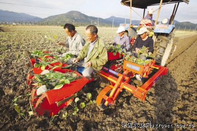 “这两亩地,合作社雇了10名工人,用了整整一天才栽好。”张松木为我们算了一笔账:采用人工种植,5人干一天只能种1亩,人工栽培不仅效率低,还非常辛苦;采用机械移栽,包括机手,5人一天能播种25亩,劳动效益足足提高了24倍。