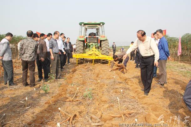 11月25日,南宁市木薯收获机械化技术培训演示现场会在隆安县乔建镇儒浩村召开,区、市农机局和农机推广站相关领导、副县长蒙精群到场指导,各县区的农机局、农机推广站负责人,我县各乡镇和华侨管理区分管负责人、农业服务中心主任、木薯种植大户、周边村屯群众等200多人到场参观。