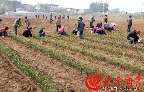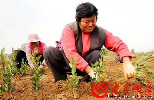 陈浙峰在枣庄市从事茶叶生意多年,通过对当地水土、气候等茶树生长的条件科学论证后,从今年初开始,投资在枣庄市孟庄镇大郭庄村以“土地流转”的方式转包农民1000多亩土地,兴建千亩茶园,实现“南茶北移”和产供销一条龙的目的。目前,技术人员正在抓住当前节气的有利时机栽植茶树苗。