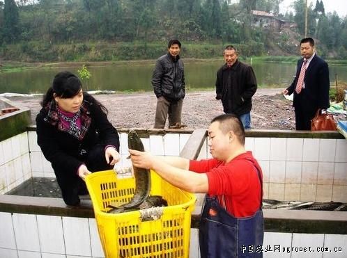 重庆铜梁县少云镇农民周运明2009年从广东返乡后,在镇里支持下办起重庆市少云乌鱼养殖有限公司,经过近3年时间发展,现乌鱼特色水产养殖面积已经达到了476亩,今年已出产商品乌鱼105万公斤,产值达到了2100万元,纯收入达到了610万元,成为西南地区技术最成熟、规模最大、效益最好的乌鱼特色水产养殖基地。图为周运明向前来参观的客人介绍有关情况。