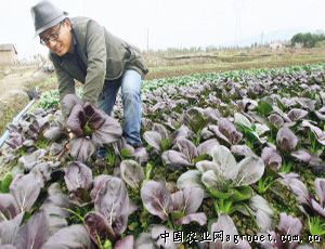 昨天,在越城区鉴湖镇的一块菜地里,记者看到一种叶子是紫色的青菜,与旁边种的普通小青菜形成了鲜明的对比。据了解,这种紫色青菜是最近刚刚引种的,市场上还不多见,与普通小青菜相比,富含花青素,具有抗氧化等作用。市场售价为6元/公斤,与普通青菜2.6~3元/公斤的价格相比,贵了一倍。