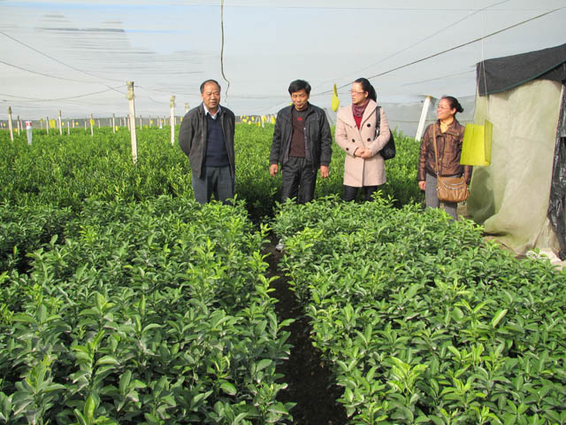 12月2日,广西区水果总站书记梁声记等一行在荔浦县农业局副局长吴德萍、水果站站长莫元妹陪同下到东昌明强村、马岭广安村等2个柑橘无病苗木繁殖基地指导工作,梁声记充分肯定了荔浦近几年来水果生产工作,特别是该县柑橘黄龙病的综合治理工作成效好。他指出,荔浦县的柑橘无病苗圃标准化管理、监管到位。但苗木品牌宣传力度不够大,要从创建无病苗圃建设政策扶植、种植补贴、秋冬季清理黄龙病病树等措施进行大力宣传造势,进一步扩大影响,着力打造荔浦水果新形象。图为广西区水果总站书记梁声记指导水果工作。