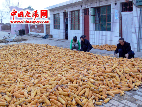 图为山河镇西关村农民在晾晒收获的玉米。