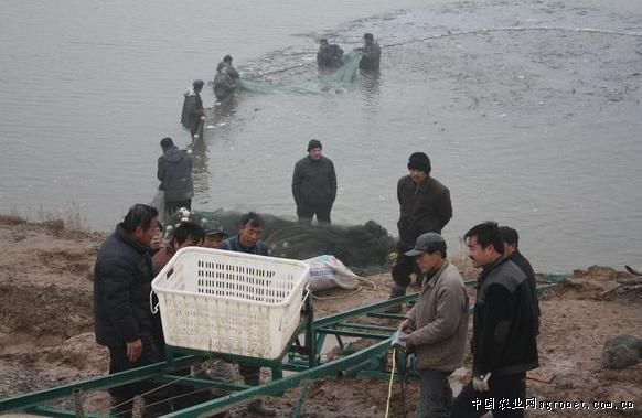 12月7日,聊城市东昌府区梁水镇闫庄水库养殖基地,清晨的水面上有一层淡淡的雾气,水面泛起层层涟漪。上午9点多,聊城市华农养殖有限公司第一届捕鱼节在这里拉开序幕。在巨网捕鱼现场,三艘渔船停靠在靠近岸边的一侧,渔民们已经用渔网围成了一个球场大小的水域。随着渔民用机械缓慢地将渔网收围,鱼儿开始跃出水面,渔网空间越小、越多的鱼跳出水面,泛起白花,当场起捕草鱼、鲤鱼、鲢鱼、鳙鱼等淡水鱼1.5万斤,最大个体达4公斤。
