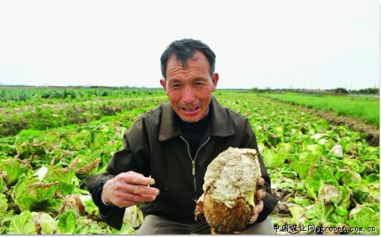定海区双桥镇?溪社区,20多亩烂在地里的白菜成了黄齐文、黄正义等菜农眼前最头疼的事情。