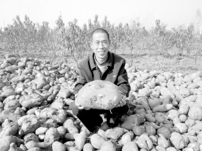 图为段广鹏抱着一个特大红薯说:“种了这么多年地,还从没种出过这么多的大红薯。”