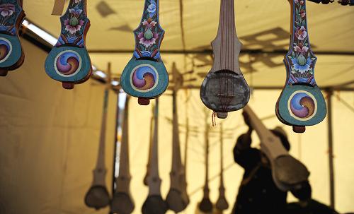 首届后藏物资交流会待售的六弦琴(12月10日摄)。