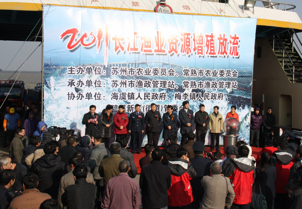 2011年是苏州市长江放流规模最大的一年,7月12日,举行了长江中下游渔业资源修复放流同步行动,放流白鲢鱼苗200万尾,花鲢鱼苗300万尾,黄桑鱼鱼苗200万尾,投入放流资金36万元。在此之前的3月份,长江太仓段放流长江四大家鱼大规格仔口鱼种227940尾,扣蟹118000只,东方暗纹豚52240尾,投入放流资金34万元。