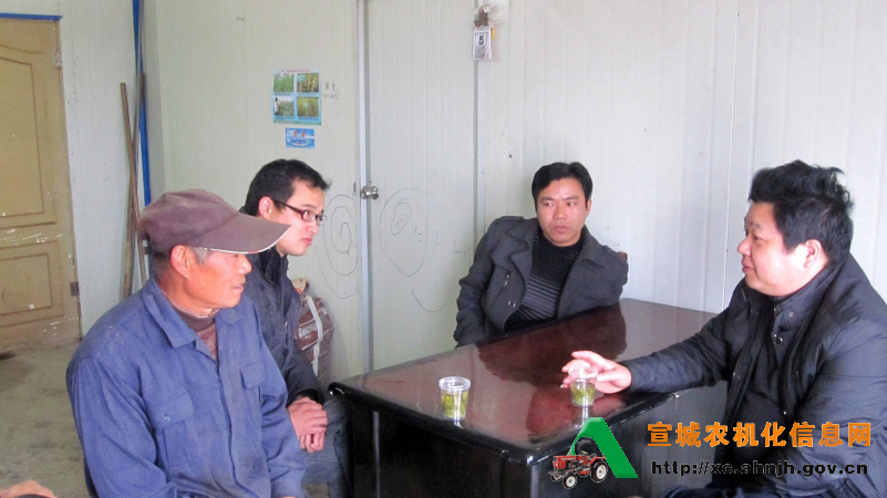 在东夏镇三岔村、庄沿村农机大户家中,指导组成员与镇农业技术综合站郭方友站长一起,就小麦机械化种植和管理对农机大户和种植大户进行了技术指导,并来到田间实地查看小麦播种质量、秸秆还田效果和麦苗长势。指导组建议,依靠购机补贴政策,发展机械化育插秧和烘干技术,并表示全力支持。