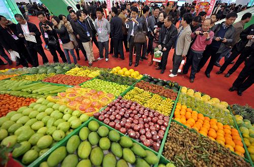 12月12日,2011年中国(海南)国际热带农产品冬季交易会在海南国际会展中心开幕。本届冬交会以“建基地、保供应、促增收”为主题,重点展示国家冬季瓜菜生产基地、热带水果基地等海南热带现代农业发展成就和最新成果。本次展会为期3天,布展总面积25万平方米,分为综合展区、供销展区等10个展区。新华社记者 郭程 摄